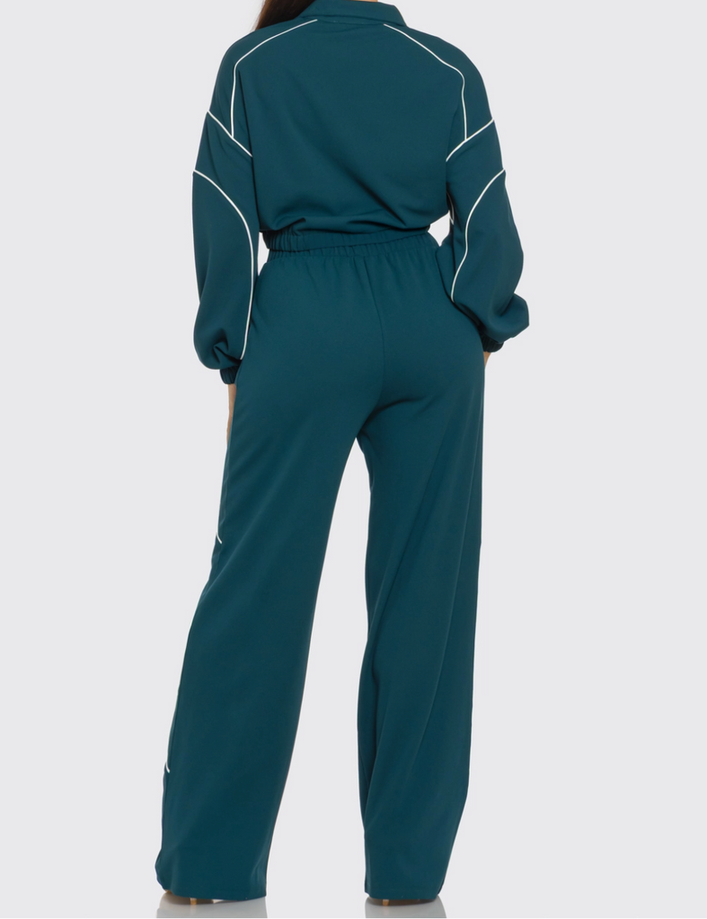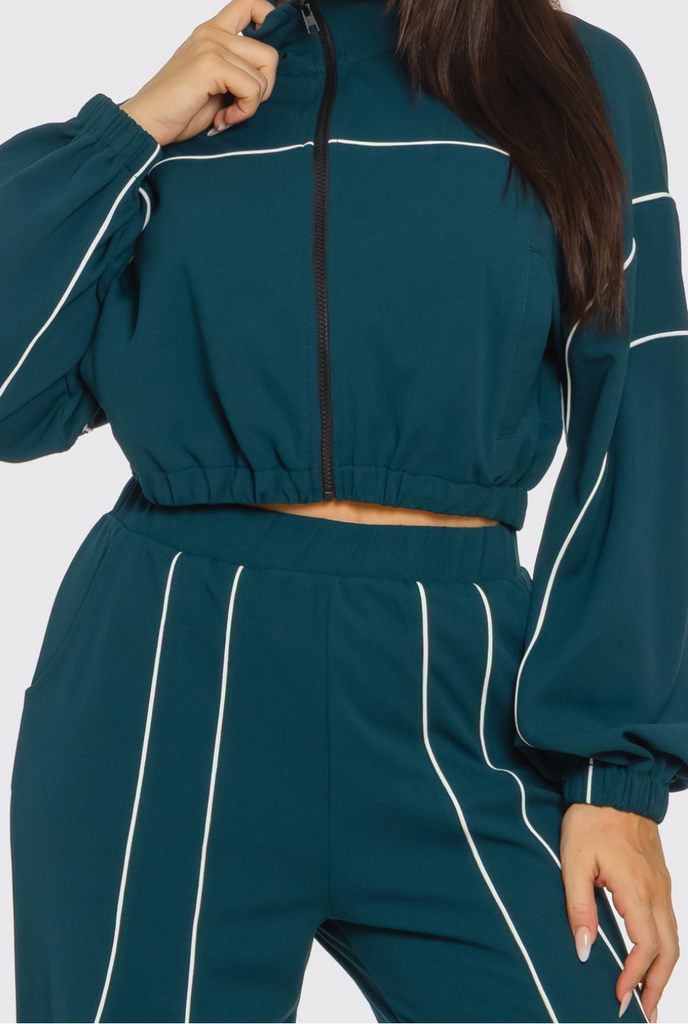 Zip Up Pipping Stripes Jacket and and Pants Set-Teal