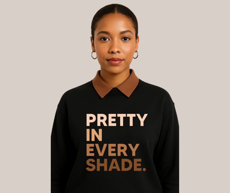 Style Tip: Pair it under our 'Pretty in Every Shade' black sweatshirt or the 'Black Women Are Dope olive sweatshirt to let the rich mocha color pop.
