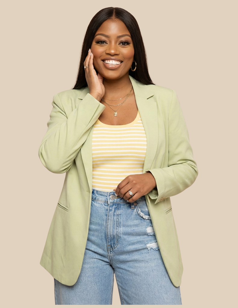 Elevate your everyday style with the Pretty Power Blazer. This soft sage women’s blazer features a clean tailored silhouette that layers effortlessly over statement tees, skirts, or denim. Designed for confident, modern women who want a polished look with purpose.